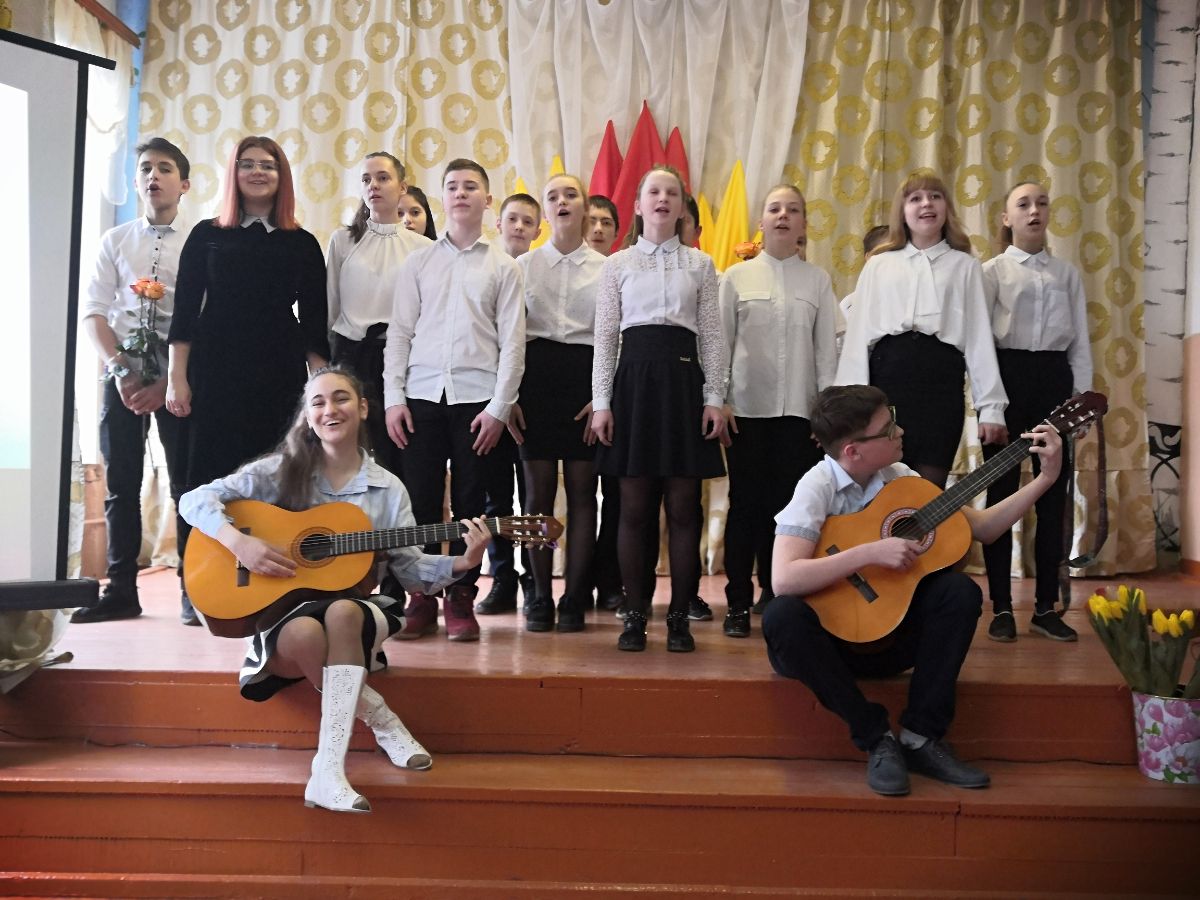 Радовать и удивлять мальчишки и девчонки умеют! Утром всем учителям мальчики вручали букеты цветов. Целый день в школе царила атмосфера праздника, на переменах играла музыка. После учебного дня в актовом зале начался концерт. Выступали ученики с 1-го по 11-й класс, учителя и даже папа одной из учениц нашей школы. Традиционно на празднике присутствовали ветераны педагогического труда. Завершила мероприятие памятное фото всех артистов и гостей праздника.